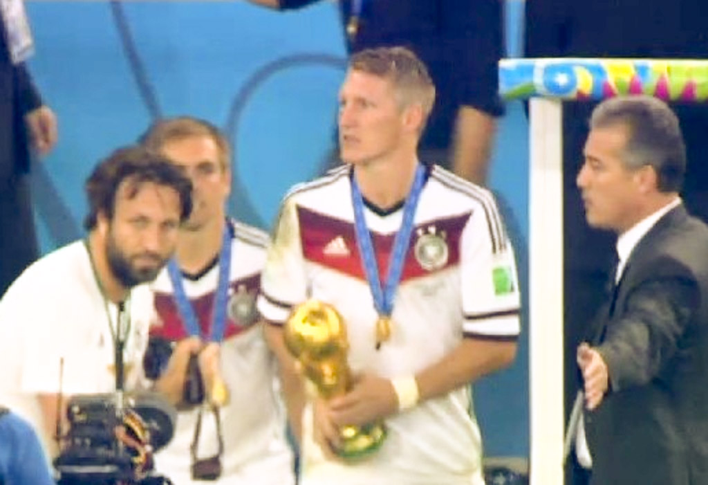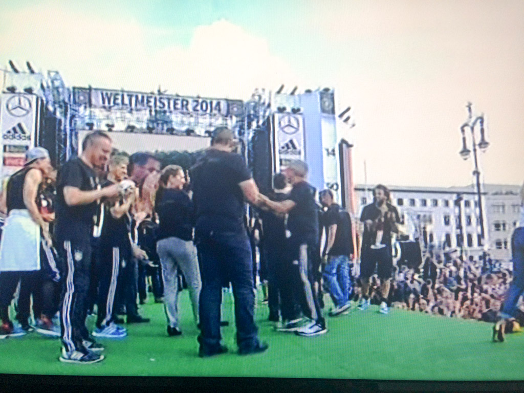 Nachdem ich erfahren hatte, dass er im Oktober 2013 die Portrait Aufnahmen der DFB Elf in seinem Studio abgelichtet hat, war für mich bereits klar das er der DFB Elf wohl länger erhalten bleibt; denn so einen Typ wie ihn gibt es nicht oft. Und tada, unmittelbar nach dem Abpfiff des WM Finales im Maracana Stadion hatte Ripky seinen grossen Auftritt. Als einziger Fotograf sah man ihn auf dem Spielfeld herumlaufen, mit seiner Leica M immer direkt an den Spielern. Es sind wohl die Fotos seines Lebens geworden, wenn ihr mich fragt. Und das war dann noch nicht das Ende, denn er hat die DFB Elf auch auf ihrem Rückflug nach Deutschland und auf ihrem Siegeszug durch Berlin begleiten dürfen.